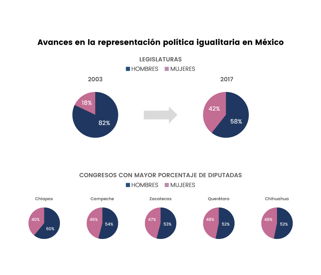 La participación política de las mujeres en el ámbito público y su acceso a cargos de elección popular trae grandes beneficios tanto para ellas, como para la sociedad en su conjunto. Sin embargo, aún cuando en México ha habido grandes avances en los últimos años; aún no es posible hablar de una verdadera representación política igualitaria.